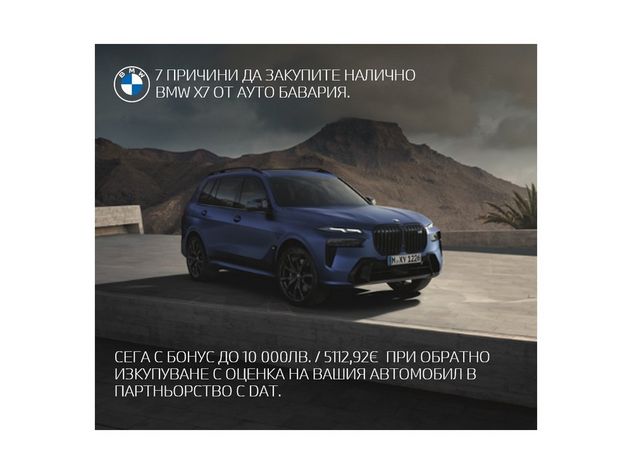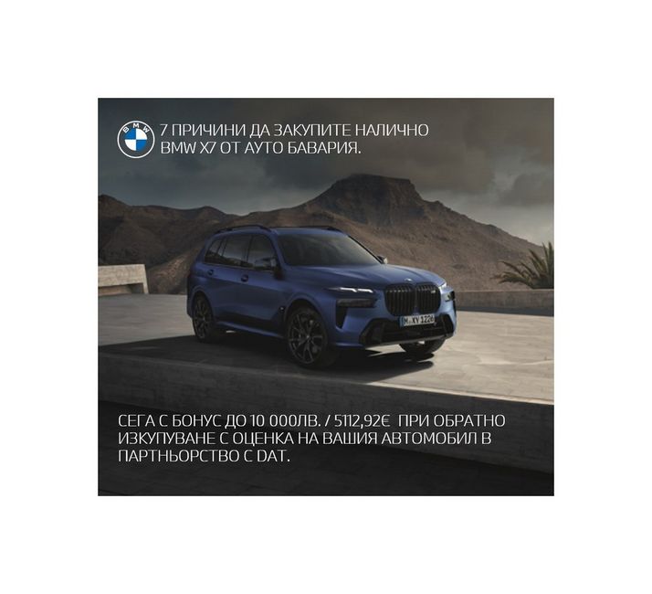Този уикенд (18-19 октомври) Ауто Бавария организира специален уикенд, посветен на BMW X7. В рамките на събитието клиентите ще могат да научат повече за специалните ценови предимства с максимален размер до 50 000 лв., да получат подарък зимни колела, да се запознаят с предложенията за налични автомобили, както и да проучат възможностите за обратно изкупуване и лизинг и т.н.