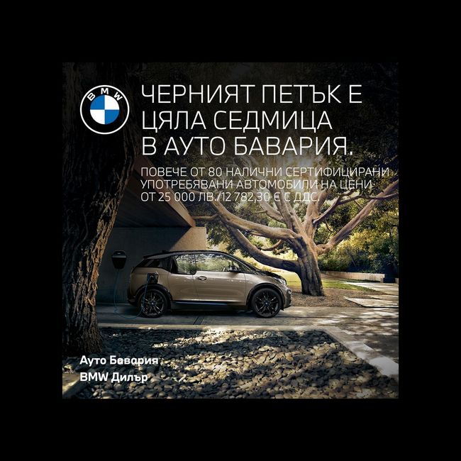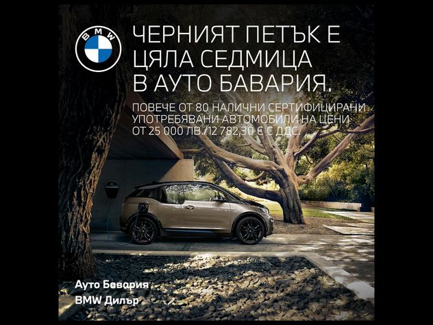 Ако искате да си купите BMW на старо с проследима история, следващата седмица е вашият шанс!В Ауто Бавария “Черният петък” е цяла седмица. От 24ти до 29ти ноември там ви очакват над 80 налични сертифицирани употребявани и демо автомобили BMW & MINI със специални ценови условия на цени, започващи от 25 000лв. / 12 782,30 евро с ДДС . А за всеки закупен автомобил в черен цвят получавате и допълнителни 1000лв. / 511,29 евро отстъпка от вече намалената цена.