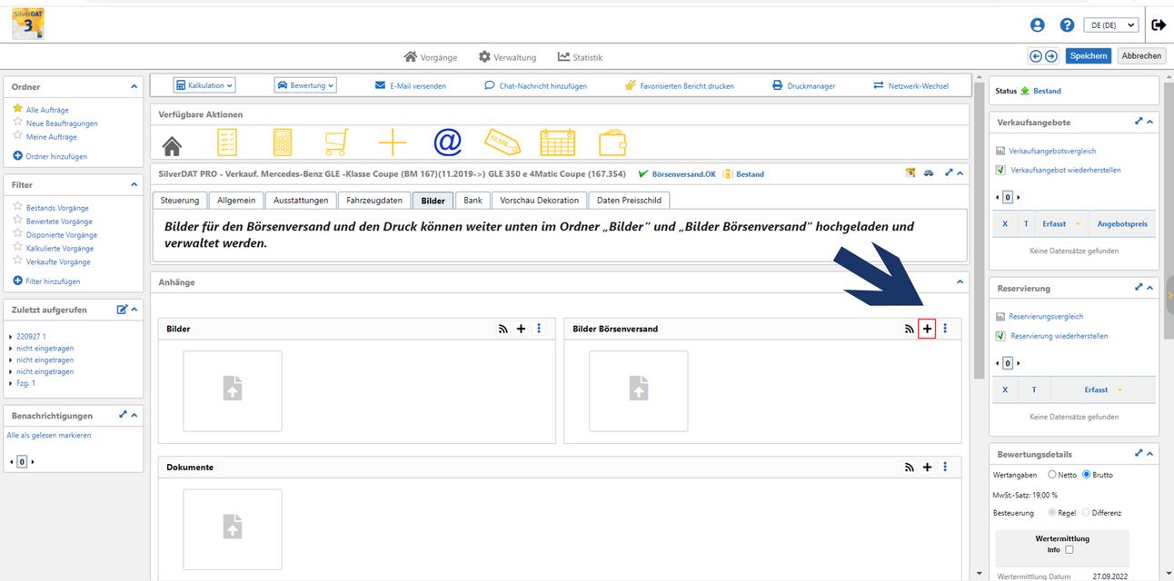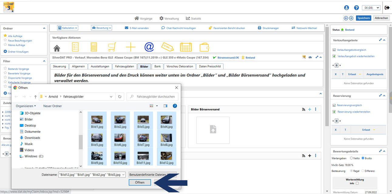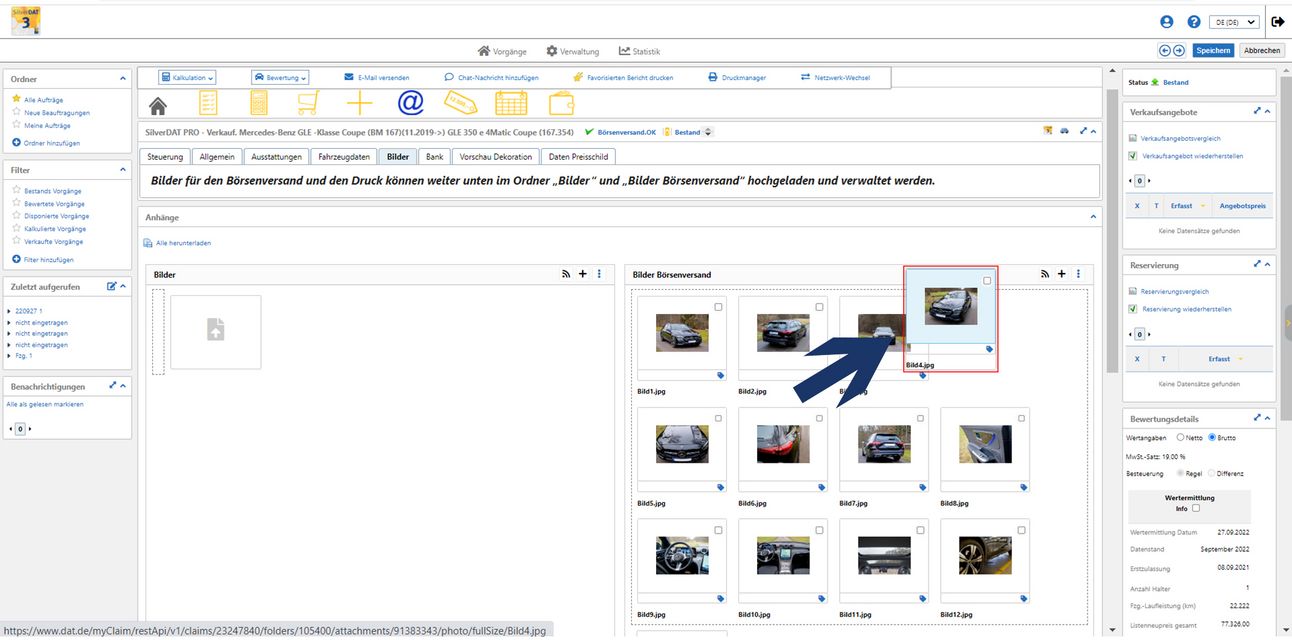 Ab sofort können die Bilder für den Börsenversand im Ordner „Bilder Börsenversand“ hochgeladen werden. Diesen Ordner finden Sie nach Auswahl eines Fahrzeuges immer unterhalb der Fahrzeuginformationen.