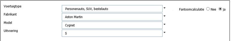 Dit doet u door eerst een voertuig te selecteren uit het voertuigbestand dat het beste overeenkomt met het voertuig waarvoor u een calculatie wilt maken. Daarna selecteert u ‘Fantoomcalculatie ja’ en vult daarna handmatig de correcties door aan de omschrijving van het voertuig. U doet dit door de veldinhoud met de muis aan te klikken. U kunt de vooringevulde tekst dan zelf overschrijven.