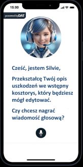 Użytkownik przesyła zdjęcia uszkodzeń bezpośrednio ze smartfona, a moduł AI automatycznie analizuje fotografie, wskazuje uszkodzone elementy i generuje szczegółowy raport z informacjami o koniecznych naprawach.