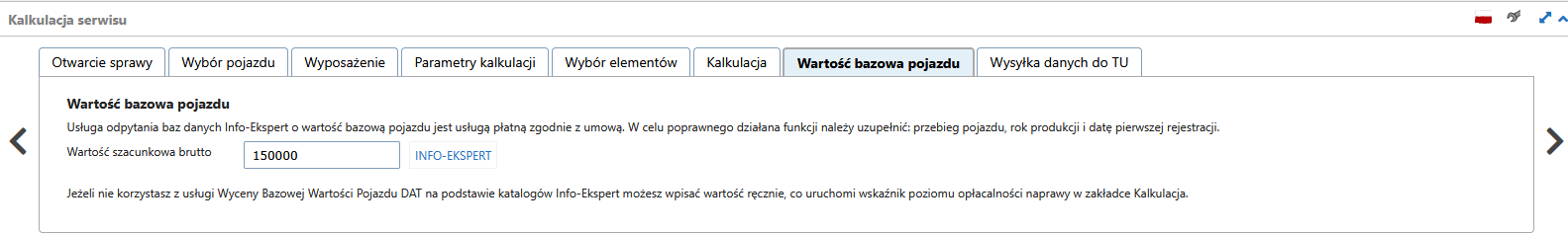 Wycena Bazowej Wartości Pojazdu w systemie myClaim z użyciem katalogów Info-Ekspert