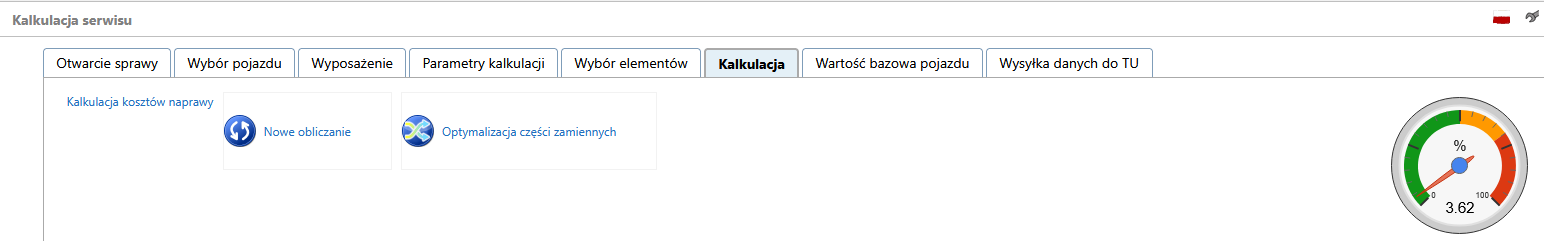 Dodatkowym udogodnieniem do tej funkcjonalności jest wbudowany zegar opłacalności naprawy. To intuicyjne narzędzie wizualne, które w czasie rzeczywistym wskazuje procentowy stosunek wyliczonych kosztów naprawy do wartości pojazdu. Dzięki niemu, osoba wykonująca kosztorys może jednym rzutem oka ocenić, czy naprawa jest ekonomicznie uzasadniona, czy też sprawa kwalifikuje się jako szkoda całkowita. Co istotne, zegar zadziała zarówno w oparciu o wartość pojazdu pobraną automatycznie z katalogów Info-Ekspert, jak i w przypadku, gdy użytkownik zdecyduje się na ręczne wprowadzenie wartości pojazdu.